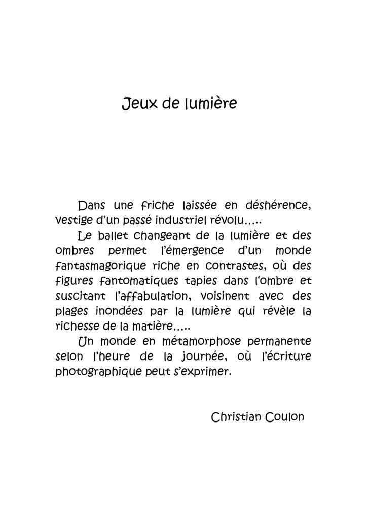Dans l’ancien chantier naval de La Seyne-sur-Mer – « une friche laissée en déshérence, vestige d’un passé industriel révolu » a écrit l’auteur pour introduire sa série, Christian Coulon s’est joint au « ballet changeant de la lumière et des ombres qui fait émerger un monde fantasmagorique riche en contrastes… ». Ombres, lumière, matières, « un monde en métamorphose permanente selon l’heure de la journée, où l’écriture photographique peut s’exprimer » selon le photographe qui propose une belle série légendée de 6 images, en sus d’une autre série consacrée à l’Islande vue en noir et blanc.